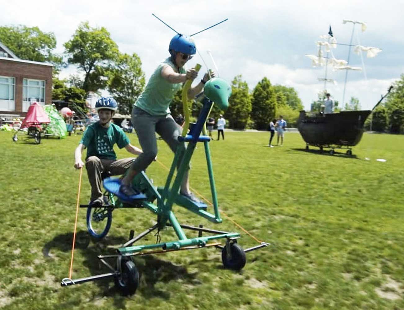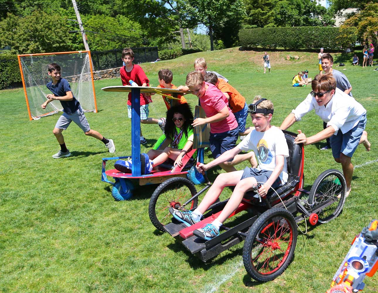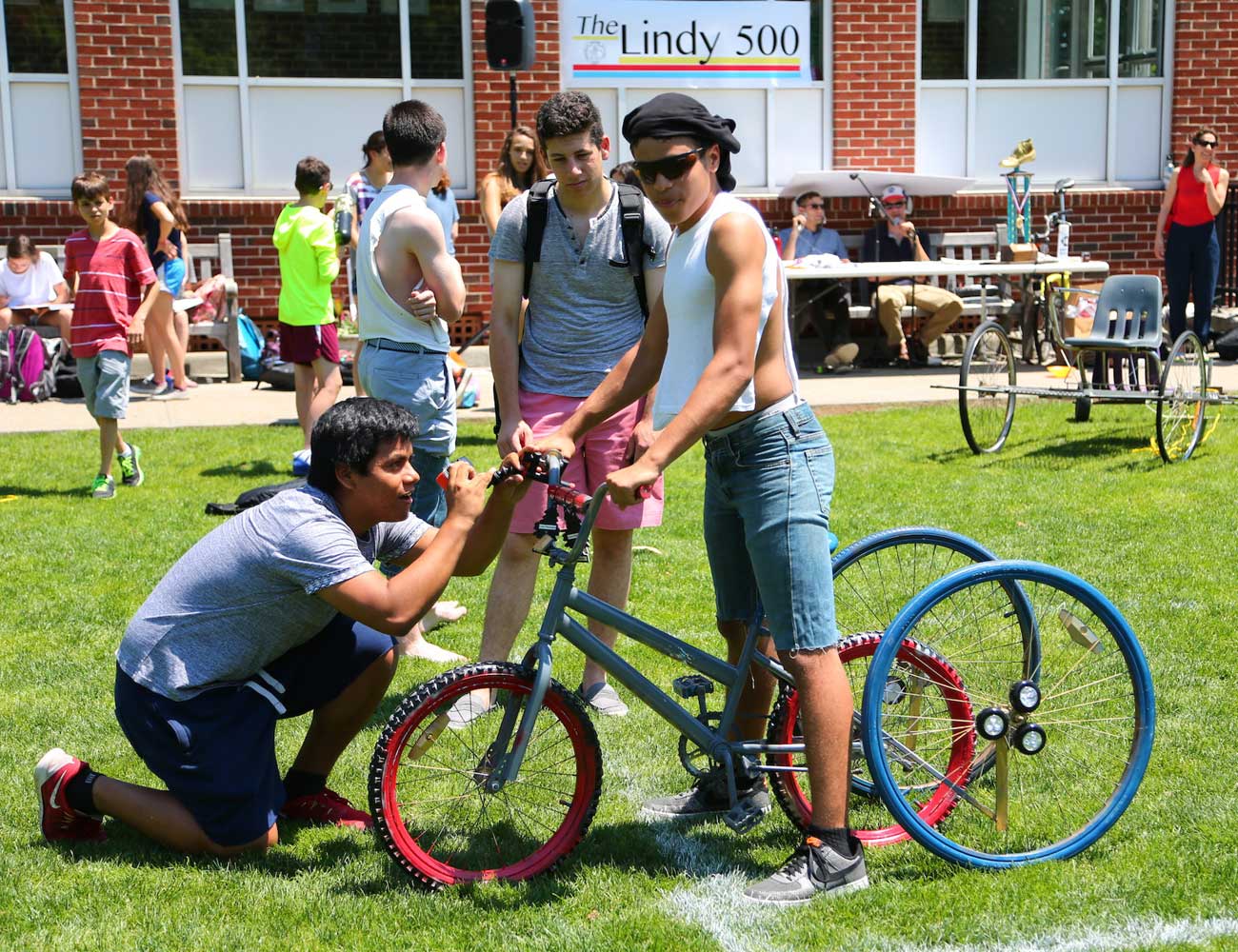 The Lindy 500 is Riverdale’s annual end of the year celebration of creativity, engineering, and the long-odds belief that all projects are possible. Students from 5th grade to high school, staff, and faculty form teams to build and race their dream machines. Along the way they employ math, physics and engineering principles, learn a variety of skills, and generally have a blast.
