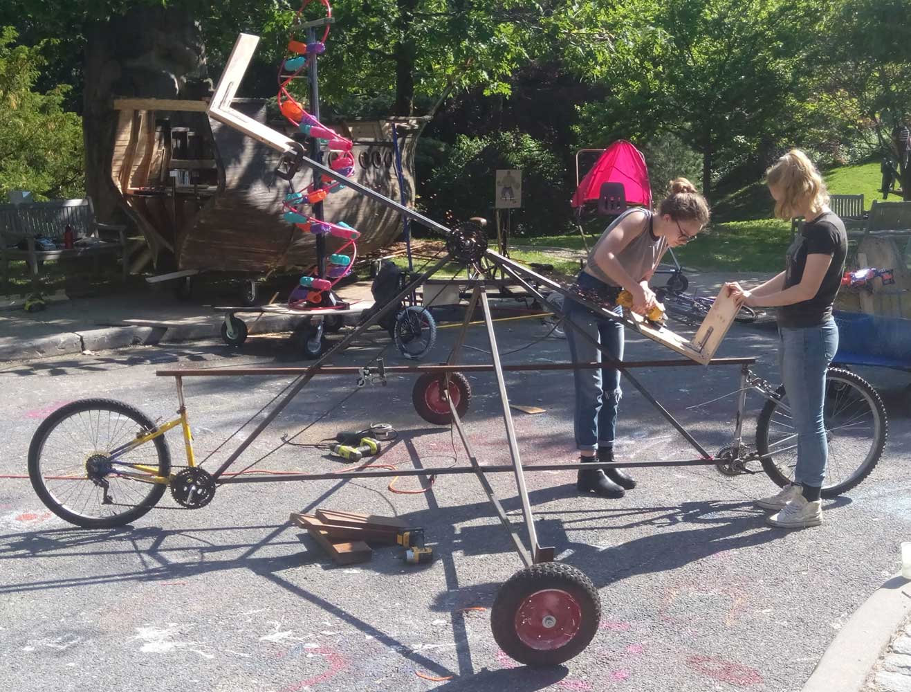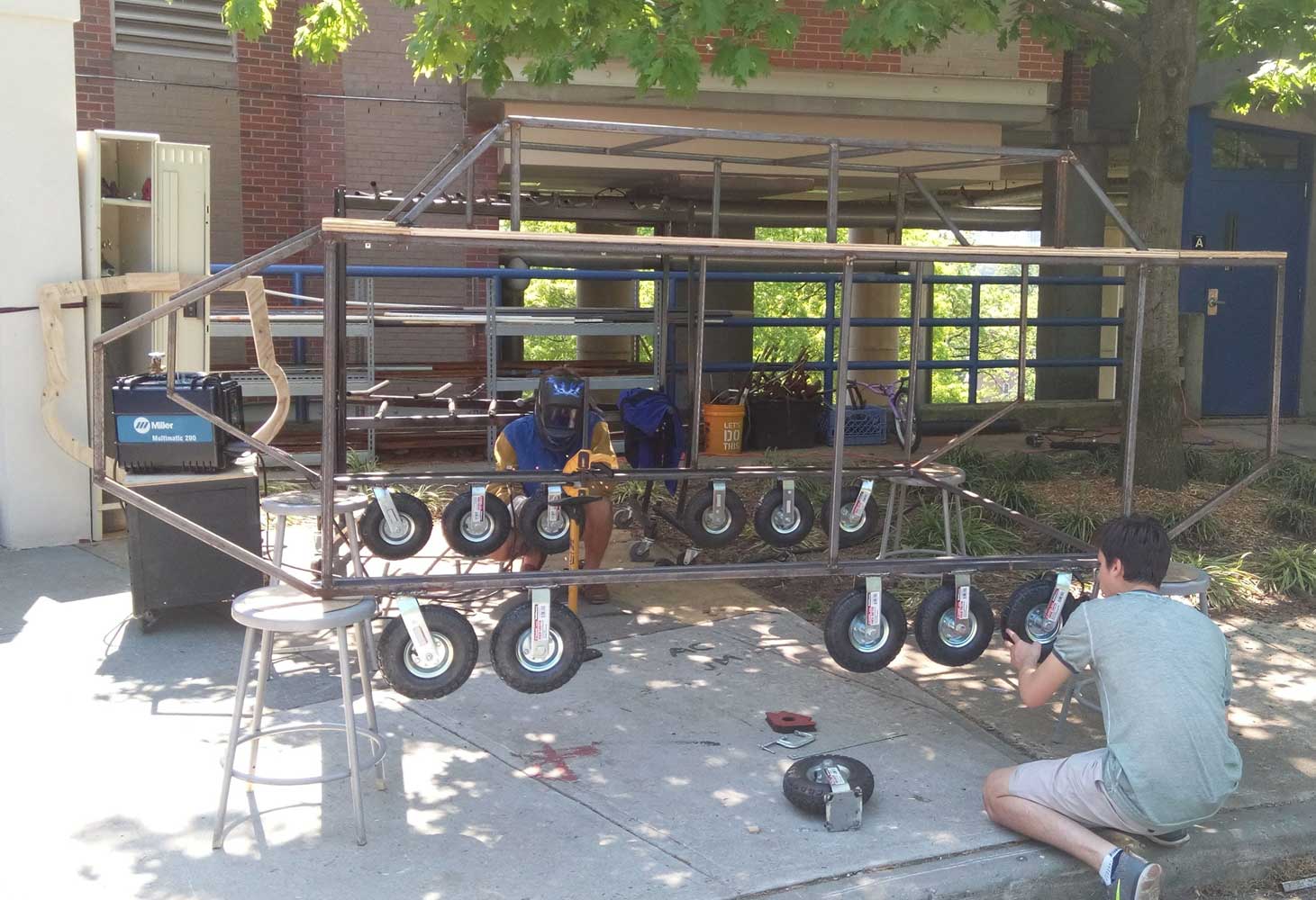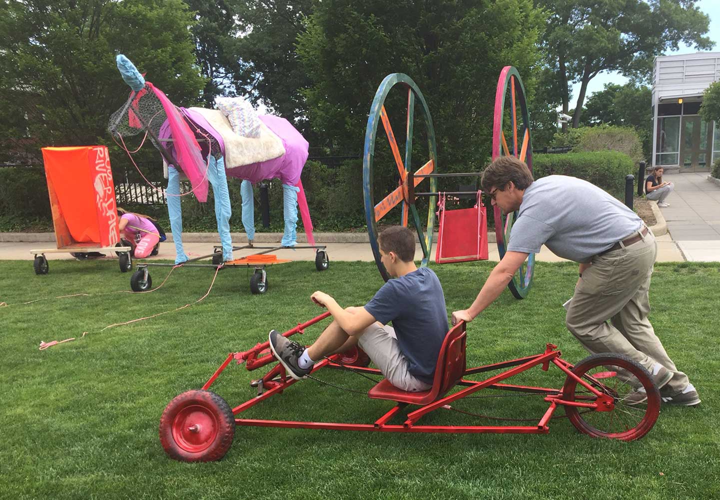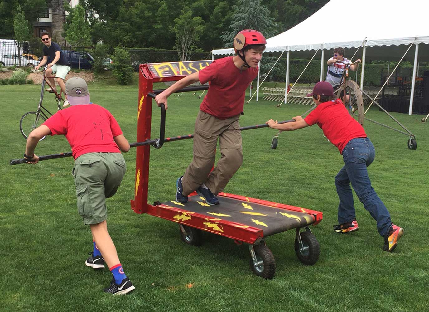 The Lindy 500 is Riverdale’s annual end of the year celebration of creativity, engineering, and the long-odds belief that all projects are possible. Students from 5th grade to high school, staff, and faculty form teams to build and race their dream machines. Along the way they employ math, physics and engineering principles, learn a variety of skills, and generally have a blast.